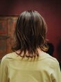 切りっぱなしのスタイルに毛先だけ外ハネにしたカジュアルなミディアムスタイル。表面の毛束を細目にチップを取り、ミックスに巻く事で柔らかさもあるスタイルとなっています。顔まわりはオールバックにして、少しだけおくれ毛を落とすのが今っぽい。