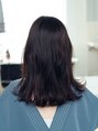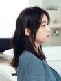 ワンレンベースで、前髪とつなげて少し顔まわりにレイヤーを入れています。そうすることによって顔まわりが軽やかな動きが出るので、ダークトーンのヘアカラーと合わせても重い印象を与えず、大人っぽいスタイルに仕上がります。【稲毛駅】