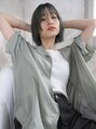 モードな雰囲気のショートボブは顔まわりのレイヤーデザインで個性的に。ストレートでかっこよくクールに、動きをつけてウルフっぽくもできるツーウェイスタイル。カラーはアッシュ系のくすみグリーンで色落ちも楽しめるハイトーン。【稲毛駅】