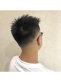 サイド、バックは0ミリスタートで刈り上げ、トップはフラットに近いセイムレイヤーで量をしっかりすいて遊びをつけやすくしました。グリースなどの光沢のでるスタイリング剤でより毛先の動きを強調した遊び心のあるスタイリングができます!