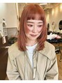 ピンクオレンジブラウン/ハッシュカット/顔周りレイヤー