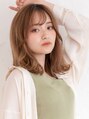 ベースは外ハネで耳のあたりからボリュームをだした、透明感のあるミディアムスタイル。アイロンで仕上げた後、バター系のスタイリング剤を馴染ませドライな質感に仕上げる。難しい方はデジタルパーマなどもおすすめ。前髪はシースルーで軽さを出す。