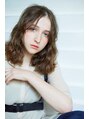 ミディアムの切りっぱなしのロブのスタイルです。カラーはブリーチなしでできる透明感のあるベージュカラーです☆【表参道/青山】