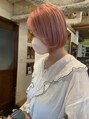 *切りっぱなし ミニボブ ブリーチありのピンクカラー 表参道