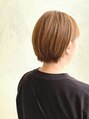 ショートボブ、サイドの髪の毛を耳にかけて、スッキリしたイメージに。カラーは、明るめのベージュを繰り返ししていたら、ブリーチをしなくてもいい感じの色になってきました。