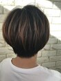 毛先に残ったハイライトを活かしたショートスタイルトップは少し短めにミドルを少し長く残すことでずれと色の見え方の表現夏にぴったり