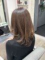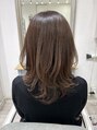 高めにいれたレイヤーと、すき具合で軽やかに。色味はモカブラウンで温かみを。ワンカールで無造作に動きのあるスタイルです。