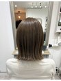 切りっぱなしボブ。くびれやすいように中ですいています。色味はオリーブベージュ。