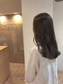 カットはゆるやかな前上がりにカットし、表面にのみレイヤーを入れた、スタイル!!表面にのみレイヤーを入れる事で艶感が出やすいです。カラーはほんのりと色味が入った寒色系、退色時も黄色くなりづらく、ダメージを感じないカラー!