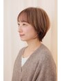襟足を遊ばせるくらいに軽くした前髪ありのショート。骨格の補正にも適しています。白髪が伸びてきても気にならないアンブレラカラー。/白髪ぼかし/白髪染め/リタッチ