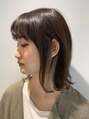 切りっぱなしボブにアイロンで毛先を外ハネにした人気のヘアスタイルです♪イヤリングカラーでさりげないオシャレが◎