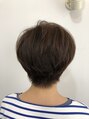 人気のショートレイヤーボスです。カラーはマットアッシュで透明感のある色味です。夏らしい軽やかな大人かわいいスタイルです。