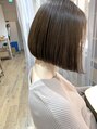首元が細く見える前下がりボブです。お客様の首、頭の形に合わせて似合う長さでデザインさせて頂きます!くせ毛の方は縮毛矯正か優しいストレートがオススメです。内巻き、外ハネどちらでもスタイリングが楽しめます。