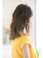 鎖骨ラインで重ためにカットしたミディアム。表面にウェーブパーマをかけることでニュアンス感◎【LODAT横浜】