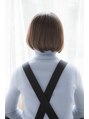 センターパートのシンプルなナチュラルボブスタイルです。ツヤ感のあるカラーで透明感と女子力アップ!重さを残しつつレイヤーで毛量調整。前下がりのラインがアクセント♪