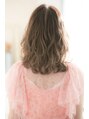 前上がりのワンレングスにスライドで長短をつける。ランダムに動くミックスパーマに、アッシュベージュで柔らかさをプラス。【LODAT横浜】