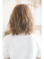 ブラントカットで全体は重め。スライドカットで毛先に抜け感を加え、ゆるめにパーマで動きと軽さを。カラーはプラチナアッシュで透ける綿菓子のような柔らかさを演出。【LODAT横浜】