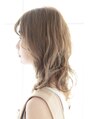 鎖骨下に切ったレイヤーボブ。トップは顎ラインにつなぐ前下がり。襟足が外にハネるように巻き、全体的に緩く揺れるパーマをかける。カラーは明るめのマロンベージュで透け感を。【LODAT横浜】