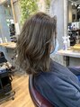 表面に太めのハイライトを入れて、明度差はあまりつけずにグレージュ系で色味を入れていきます☆根元を暗めにする事で立体感がでます☆陰影が楽しめるデザインカラーです!【LODAT横浜】