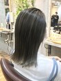 表面に太め、細めのハイライトを、ランダムに入れて、明度差をつけたグレージュ系で色味を入れていきます☆根元を暗めにする事で立体感がでます☆陰影が楽しめるデザインカラーです!【LODAT横浜】
