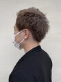 ショートバングスタイルに全体ブリーチした後色味を入れてます☆色落ちも楽しみなカラー。グレージュ☆光の角度によって見え方が変わります♪重さと軽さの爽やかスタイル(^^)【LODAT横浜】