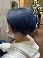 全体ブリーチした後入れてます。色落ちも楽しみなカラー☆ロイヤルブルー☆光の角度によって見え方が変わります♪透明感がGood!【LODAT横浜】