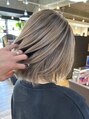 全体ブリーチした後入れてます。色落ちも楽しみなカラー☆ミルクティーベージュ☆根元を暗めにする事で陰影をつけて立体感のあるスタイルになります◎光の角度によって見え方が変わります♪透明感がGood◎【LODAT横浜】
