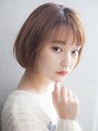 顔周りに沿ったカットラインが、小顔効果とかわいらしい印象を与えてくれるスタイル。いつもの茶髪ではなく少し差をつけるにはおすすめのオレンジベージュカラーも相性抜群◎