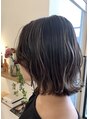 ハイライト×バレイヤージュカラー!!ハイライト部分はブリーチで、根元暗めのブルーから、グラデーションで毛先を明るめのグレージュで、切りっぱなしボブもオシャレに♪