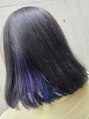 インナーカラーはブリーチをして青味のある紫のカラートリートメントをON!!ベースは暗くても光が当たると透明感のあるように、イルミナカラーでアッシュグレー♪ベースとインナー部分の色の系統を統一しているのでとても馴染みやすいです!