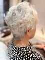 ふんわりと立ち上がるトップと、柔らかく重なり合うカールがとても上品なミセススタイル。自然な白髪の美しさを生かしながら、動きとボリュームをしっかりキープすることで、後ろ姿まで華やかに。