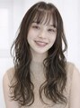 透け感のあるシースルーバングと、程よく動きを出したニュアンスウェーブを組み合わせた柔らかなロングスタイル。顔まわりから毛先にかけて自然なカールをつけることで、優しく親しみやすい印象に仕上げています。