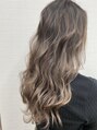 ロングスタイルにセピアグレージュをオン!バレイヤージュベースなので毛先に向かって透明感と淡い色がグラデーションになってます!