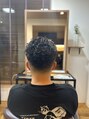 メンズパーマ×カット×ハイライトパーマとハイライトは相性抜群です!!サイドは刈り上げることで清潔感もありながらパーマで男らしさをより引き出します。