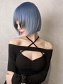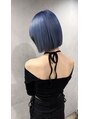 顔周りデザインカラー/ブルー/切りっぱなしボブ