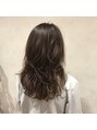 レイヤーとハイライトをそれぞれ引き立てるセミロング。カラーのベースはグレージュで、染めたてはニュアンスのハイライトも、退色していく過程で存在感が出てくるので、長く楽しんでいただけるカラーになってます。