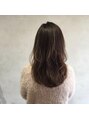 表面だけにレイヤーを入れてふんわりさせたやわらかいセミロング。細めのハイライトを全体に散りばめて動きをプラスした上級者カラーで周りと差をつけるオリジナルカラーです。ハイライトを細めにすることで上品さもあって大人女性も楽しめます。