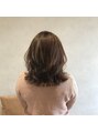 内巻きと外ハネを組み合わせてくびれのある軽やかで動きのあるセミディスタイルです。ほんのりグレーをブレンドしたまろやかベージュが程よい透明感とやわらかさを出してくれます。