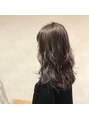 透明感もツヤ感もあるチョコレートベージュです。やわらかさを引き立てるのに巻きアレンジで仕上げてます。