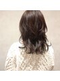 レイヤーを入れて動きを出しやすくした大人ウルフです。巻き髪にするとやわらかく軽やかな印象が引き立ちます。少しくすみ感のあるグレージュは、退色していく過程で透明感とやわらかい雰囲気が出てきます。