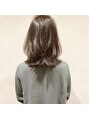 外ハネと内巻きを組み合わせて立体感を出したミディアムボブです。透明感とくすみ感でできた赤味ゼロカラーです。