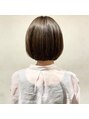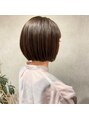 ナチュラルなやわらかいストレートを施したフィット感のあるボブです。パツンとラインが特徴で、可愛いです。カラーは肌映えするミントグレージュで、透明感があってやわらかい雰囲気に仕上げてくれます。