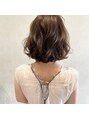 切りっぱなしボブを巻き髪アレンジしました。透明感のあるアッシュグレーは、巻くことで透明感が増してよりやわらかくなります。