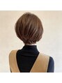 襟足をタイトに締めた奥行き感があるコンパクトショートです。さりげなく耳をかけるシチュエーションも可愛くておすすめです。程よくくすみ感があってやわらかく透明感のあるグレージュで軽い印象に仕上げてます。