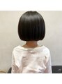 襟足の長さをギリギリに設定して、それを基準に水平ラインでサイドまで切ってます。前髪も眉上で切って、小さいお子さまならではの可愛さが引き立つボブになってます。