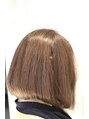 オフィスでも対応できるボブスタイルにバッサリカットし、オリーブアッシュにして赤みを抑えています。白髪もカバーしてツヤツヤに!<堀江・新町>