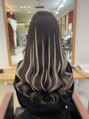ケアカラー、プルエクステ(ダイヤモンド100本)でロングヘアーにしました♪ハイライト風にデザインでつけることも可能なのでブリーチなしでダメージレスでおすすめです(^^)