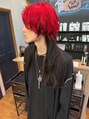 トップはパキッと赤色のウルフ絶壁解消でバッサリカットし、毛先は長さを活かしつつ、オシャレでかっこいいウルフに!