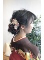 卒業式のヘアセットです。パーティードレスにも合うように華やかに作りました。お飾りは袴やドレスの色味や雰囲気からイメージして、作成したものです!飾りのオーダーも承っておりますのでご相談ください。