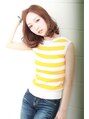 この甘辛なカールがついたくせ毛風前髪がポイント!夏はこのぐらいのミディアム~セミディがお勧め☆大人っぽくもグラマラスにもできちゃいます。カラーは8レベルのベージュ系でナチュラルグラデーションに。